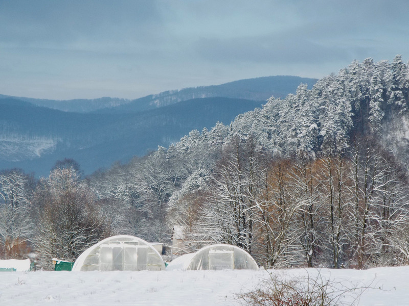 közeli havas erdő