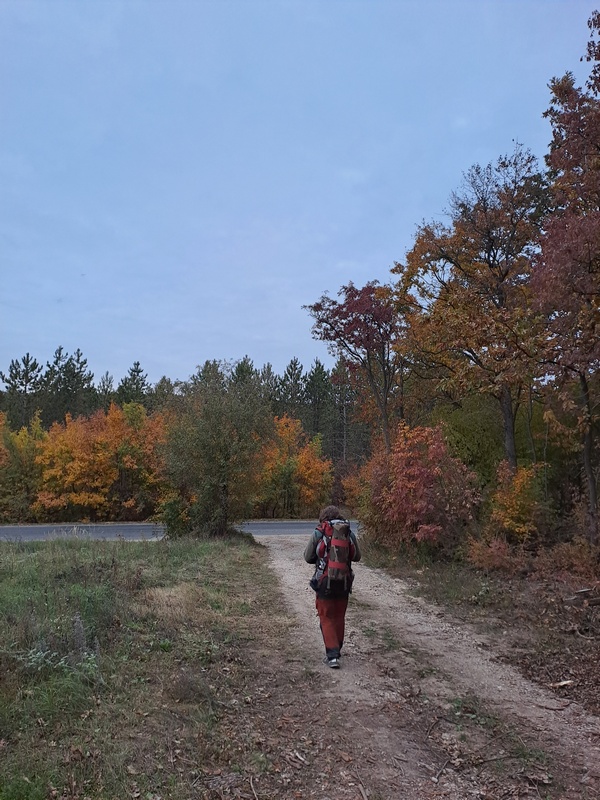 úton az erdő szélén